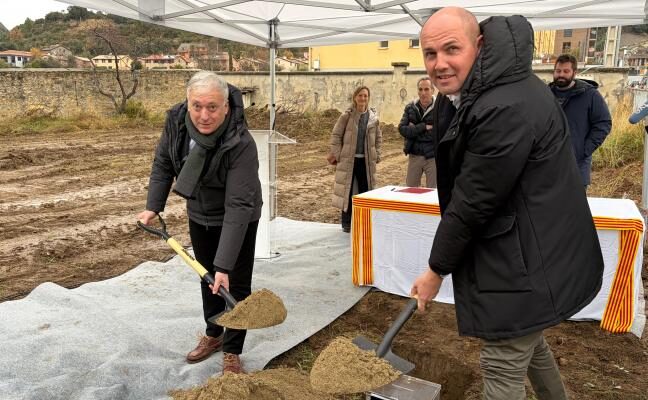 Octavio López coloca la primera piedra de las 15 viviendas de Boltaña destinadas a los trabajadores del sector turístico