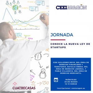 El miércoles 29 de marzo de 12:00 a 13:00 horas CEEIAragón organiza una jornada técnica en formato digital para dar a conocer la denominada Ley de Startups (Ley 28/2022 de 21 de diciembre de Fomento del Ecosistema de Las Empresas Emergentes). El objetivo de la sesión es exponer las principales … [Read more...] about Jornada CEEI “Conoce la nueva Ley de Startups”