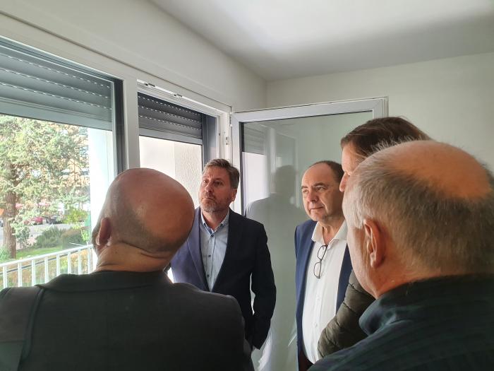 El consejero ha estado acompañado en su visita por la directora general de Vivienda y Rehabilitación, Verónica Villagrasa, y por el gerente de Suelo y Vivienda de Aragón, sociedad adscrita a CORPORACIÓN, Javier Albisu Iribe.